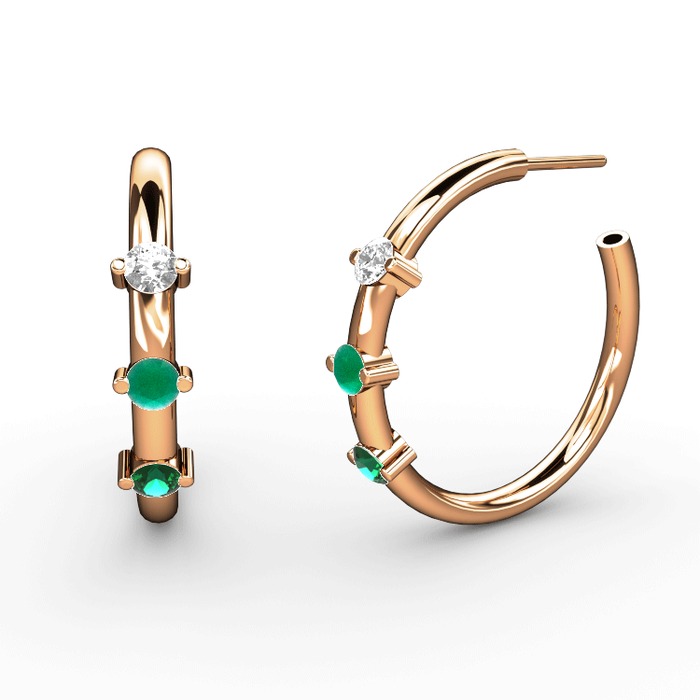 Yeşil kuvars, kök zümrüt ve beyaz zirkon 925 ayar rose altın kaplama gümüş küpe