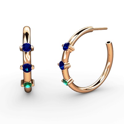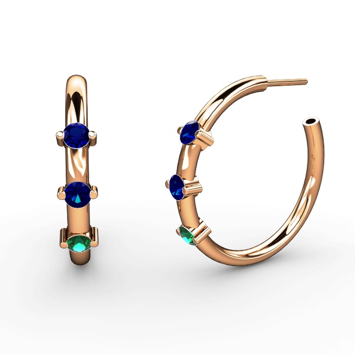 Yeşil kuvars ve lab safir 8 ayar rose altın küpe