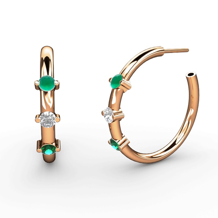 Yeşil kuvars, pırlanta ve kök zümrüt 8 ayar rose altın küpe (0.22 karat)