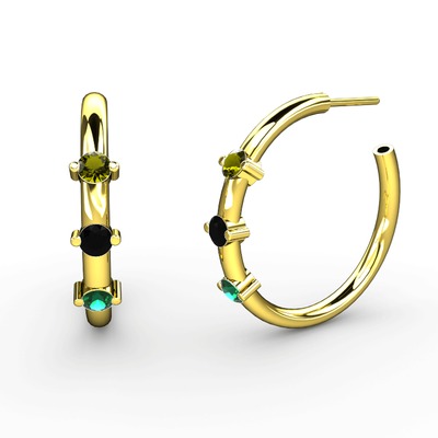 Yeşil kuvars, siyah zirkon ve peridot 8 ayar altın küpe