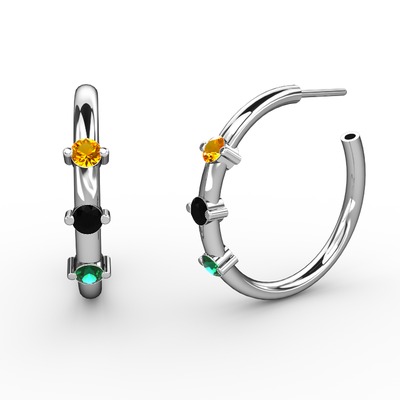 Yeşil kuvars, siyah zirkon ve sitrin 18 ayar beyaz altın küpe