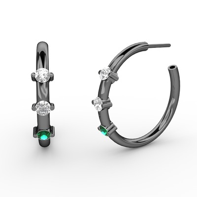 Yeşil kuvars, swarovski ve beyaz zirkon 925 ayar siyah rodyum kaplama gümüş küpe