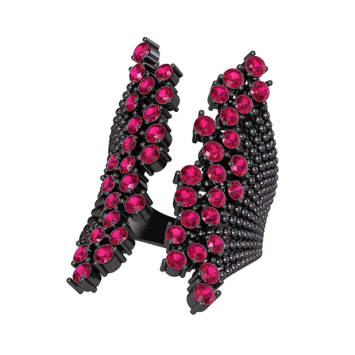 Rodolit garnet 925 ayar siyah rodyum kaplama gümüş yüzük