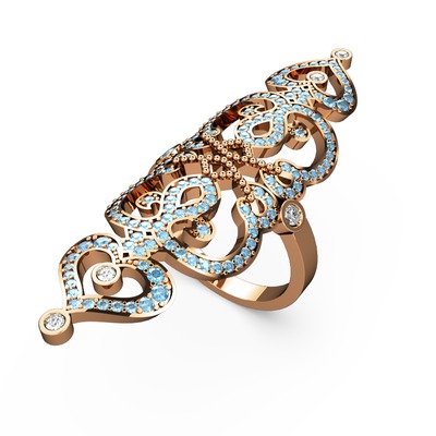 Akuamarin ve beyaz zirkon 14 ayar rose altın yüzük