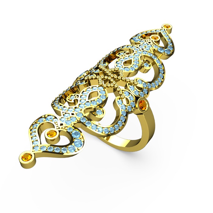 Akuamarin ve sitrin 18 ayar altın yüzük