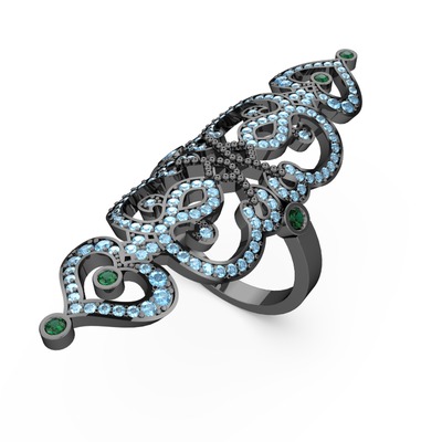 Akuamarin ve yeşil kuvars 925 ayar siyah rodyum kaplama gümüş yüzük
