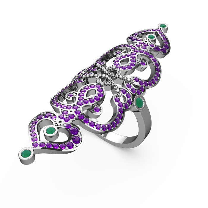 Ametist ve kök zümrüt 14 ayar beyaz altın yüzük