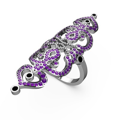 Ametist ve siyah zirkon 14 ayar beyaz altın yüzük