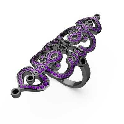 Ametist ve siyah zirkon 925 ayar siyah rodyum kaplama gümüş yüzük
