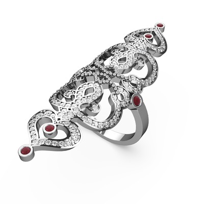 Beyaz zirkon ve kök yakut 8 ayar beyaz altın yüzük