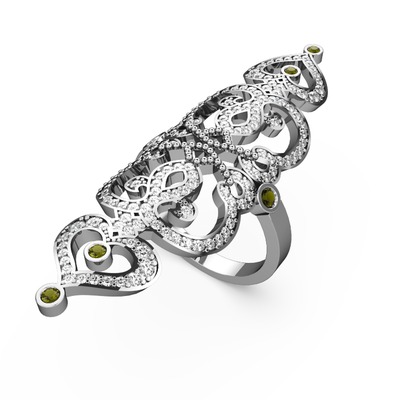 Beyaz zirkon ve peridot 18 ayar beyaz altın yüzük