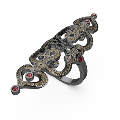 Dumanlı kuvars ve garnet 925 ayar siyah rodyum kaplama gümüş yüzük