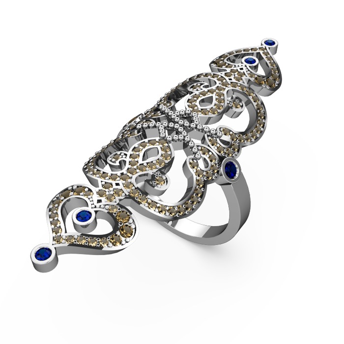 Dumanlı kuvars ve lab safir 14 ayar beyaz altın yüzük