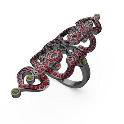 Garnet ve peridot 925 ayar siyah rodyum kaplama gümüş yüzük