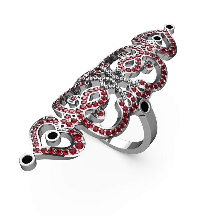 Garnet ve siyah zirkon 14 ayar beyaz altın yüzük