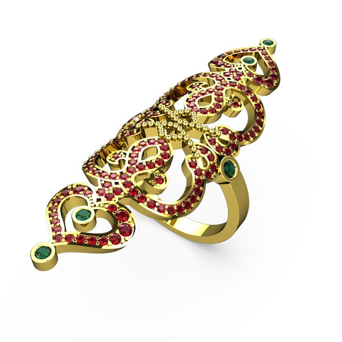 Garnet ve yeşil kuvars 8 ayar altın yüzük
