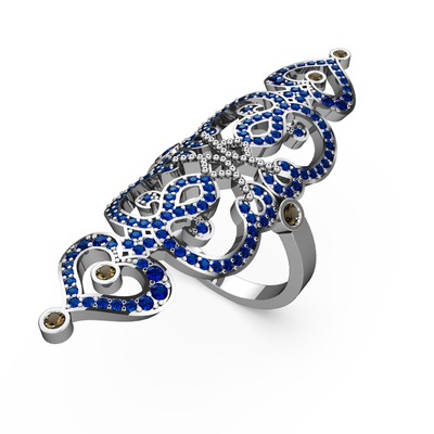 Lab safir ve dumanlı kuvars 14 ayar beyaz altın yüzük