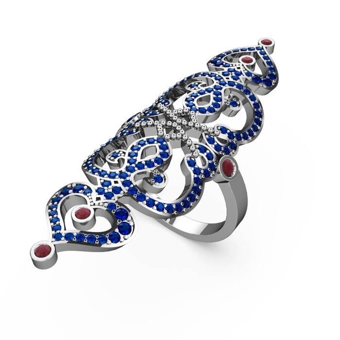 Lab safir ve kök yakut 14 ayar beyaz altın yüzük