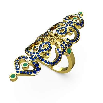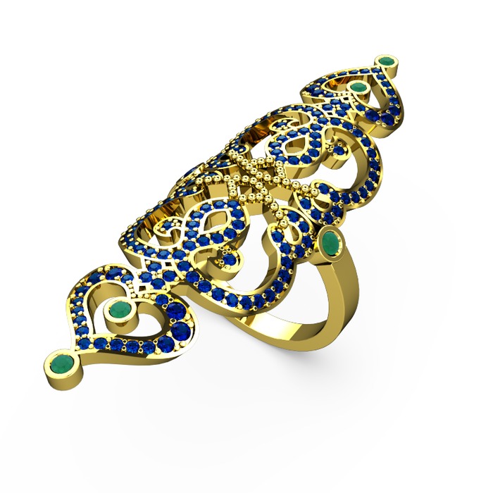 Lab safir ve kök zümrüt 8 ayar altın yüzük