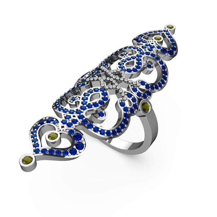 Lab safir ve peridot 8 ayar beyaz altın yüzük