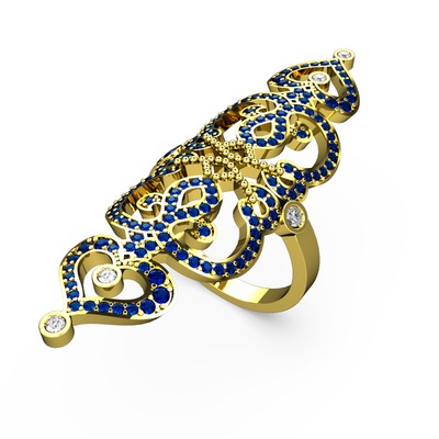 Lab safir ve pırlanta 18 ayar altın yüzük (0.18 karat)