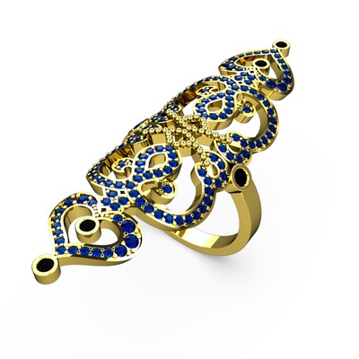 Lab safir ve siyah zirkon 8 ayar altın yüzük