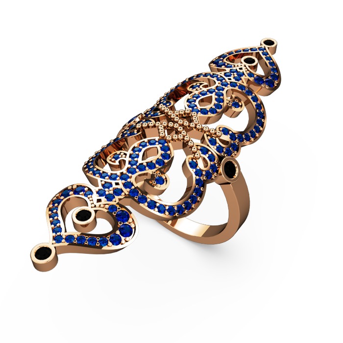 Lab safir ve siyah zirkon 8 ayar rose altın yüzük
