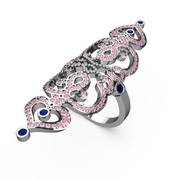 Pembe kuvars ve lab safir 8 ayar beyaz altın yüzük