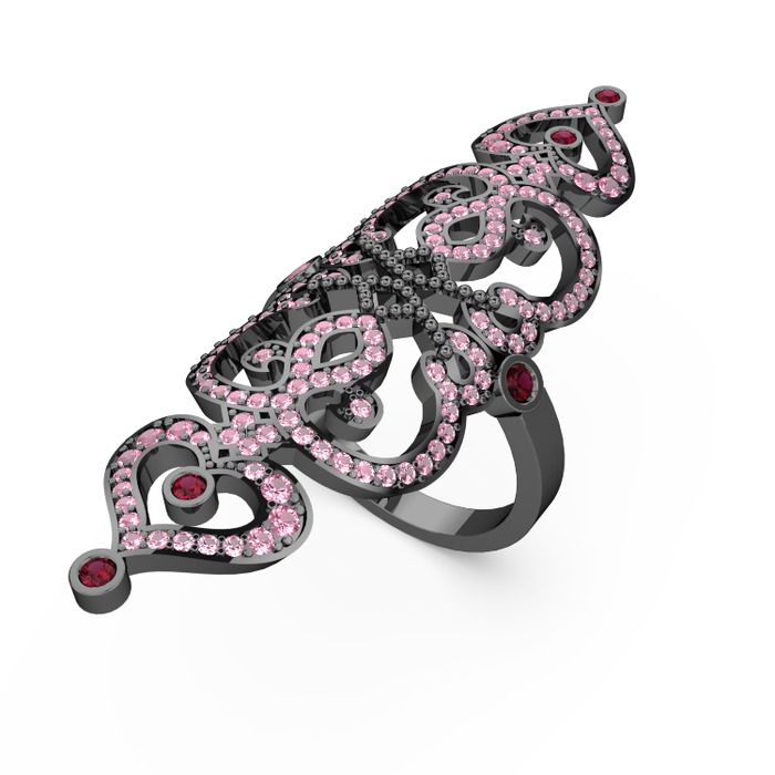 Pembe kuvars ve rodolit garnet 925 ayar siyah rodyum kaplama gümüş yüzük