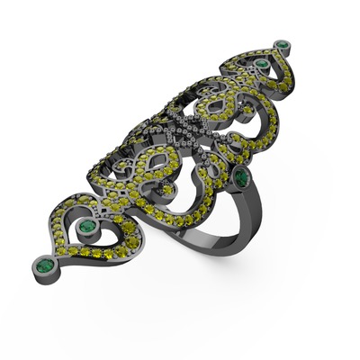 Peridot ve yeşil kuvars 925 ayar siyah rodyum kaplama gümüş yüzük