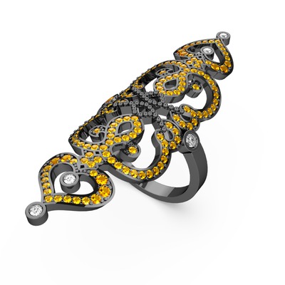 Sitrin ve beyaz zirkon 925 ayar siyah rodyum kaplama gümüş yüzük