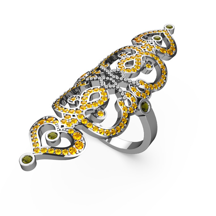 Sitrin ve peridot 925 ayar gümüş yüzük