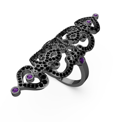 Siyah zirkon ve ametist 925 ayar siyah rodyum kaplama gümüş yüzük