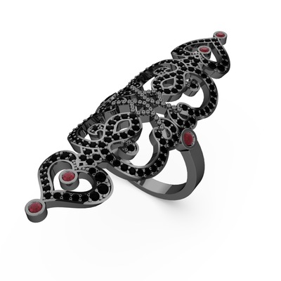 Siyah zirkon ve kök yakut 925 ayar siyah rodyum kaplama gümüş yüzük