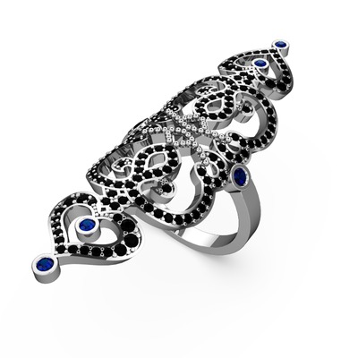 Siyah zirkon ve lab safir 18 ayar beyaz altın yüzük