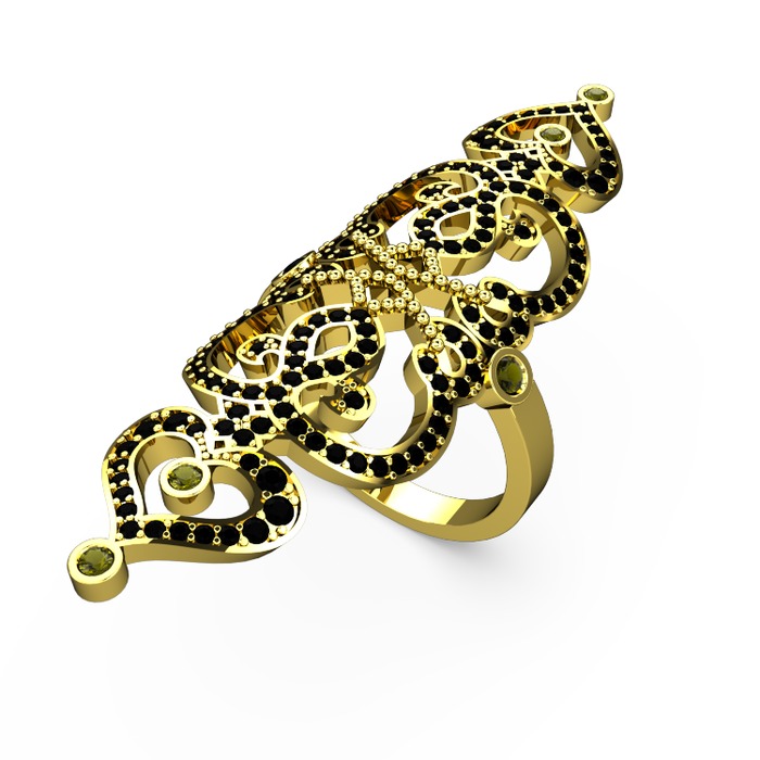 Siyah zirkon ve peridot 18 ayar altın yüzük