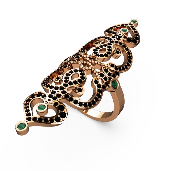 Siyah zirkon ve yeşil kuvars 8 ayar rose altın yüzük