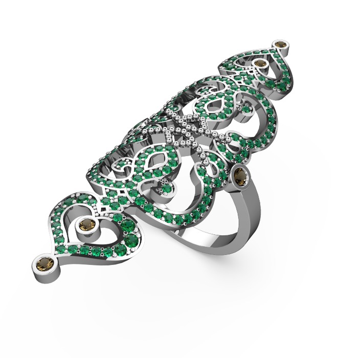 Yeşil kuvars ve dumanlı kuvars 18 ayar beyaz altın yüzük