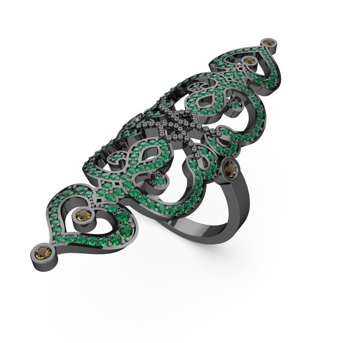 Yeşil kuvars ve dumanlı kuvars 925 ayar siyah rodyum kaplama gümüş yüzük