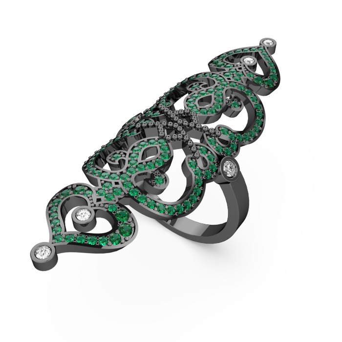 Yeşil kuvars ve pırlanta 925 ayar siyah rodyum kaplama gümüş yüzük (0.18 karat)