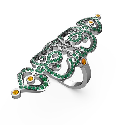 Yeşil kuvars ve sitrin 8 ayar beyaz altın yüzük