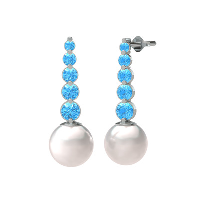 Inci ve akuamarin 14 ayar beyaz altın küpe