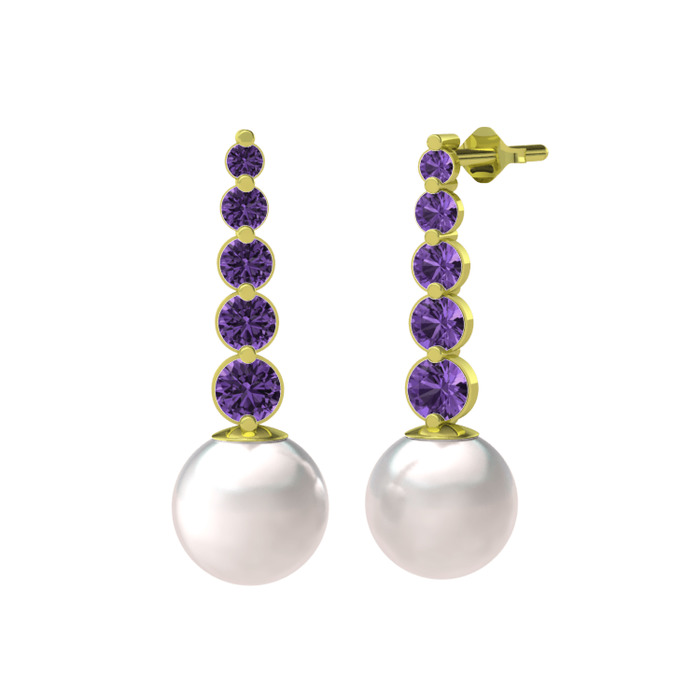 Inci ve ametist 925 ayar altın kaplama gümüş küpe