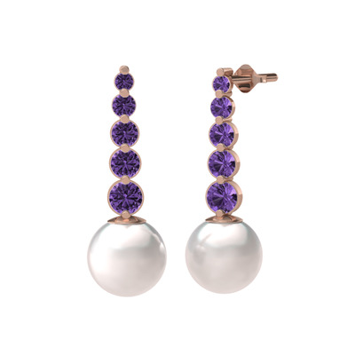 Inci ve ametist 925 ayar rose altın kaplama gümüş küpe