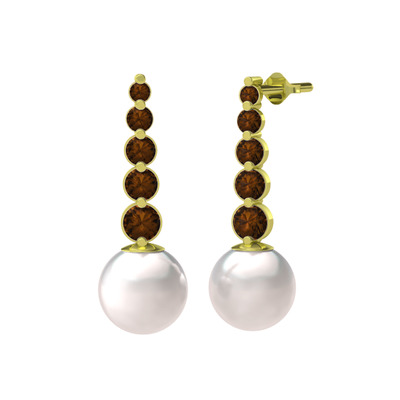 Inci ve dumanlı kuvars 925 ayar altın kaplama gümüş küpe