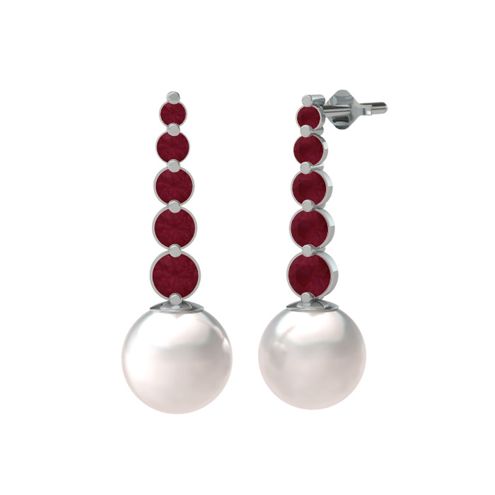 Inci ve kök yakut 18 ayar beyaz altın küpe