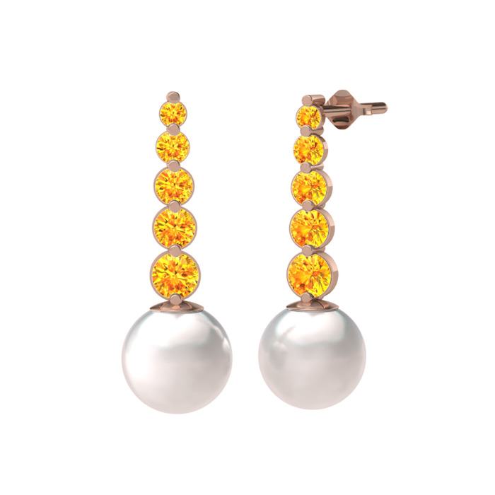 Inci ve sitrin 925 ayar rose altın kaplama gümüş küpe