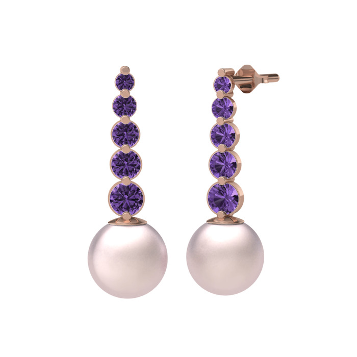 Pembe inci ve ametist 8 ayar rose altın küpe