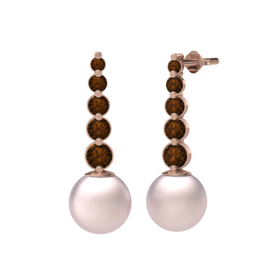 Pembe inci ve dumanlı kuvars 8 ayar rose altın küpe