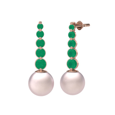 Pembe inci ve kök zümrüt 8 ayar rose altın küpe